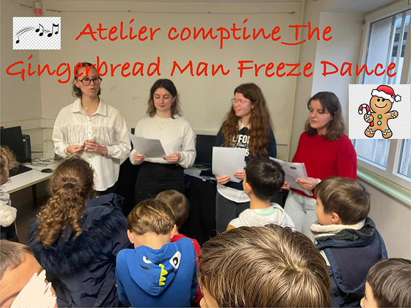 Les étudiants M1 MEEF 1er degré, option culture internationale, ont effectué une sortie universitaire à l’école élémentaire des Tilleuls, Savigny le sec, le vendredi 28 novembre 2025. Ils ont animé un atelier album The Gingerbread Man (illustrated by Elena Temporin, retold by Mairi Mackinnon, Usborne Picture Books); un atelier comptine (The Gingerbread Man Freeze Dance en cycle 2 / Let's make cookies for Santa Claus en cycle 3) et un atelier pâtisserie. Ils ont ensuite participé en binôme avec un élève de CM2 à un cours en visioconférence avec une classe year 5, Great Kingshill, C of E combined school, Londres. Une expérience formatrice pour l'entrée dans le métier de professeur des écoles. Bravo à eux pour leur investissement!