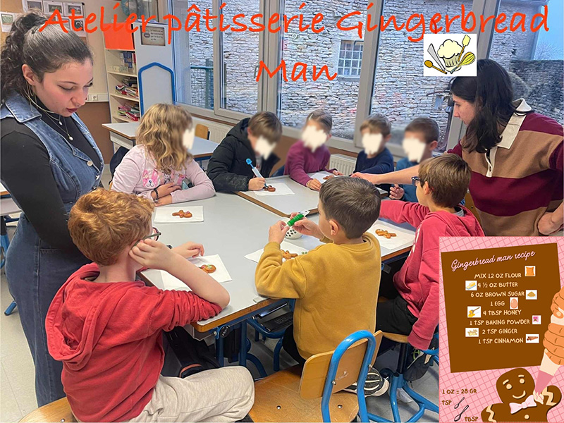 Les étudiants M1 MEEF 1er degré, option culture internationale, ont effectué une sortie universitaire à l’école élémentaire des Tilleuls, Savigny le sec, le vendredi 28 novembre 2025. Ils ont animé un atelier album The Gingerbread Man (illustrated by Elena Temporin, retold by Mairi Mackinnon, Usborne Picture Books); un atelier comptine (The Gingerbread Man Freeze Dance en cycle 2 / Let’s make cookies for Santa Claus en cycle 3) et un atelier pâtisserie. Ils ont ensuite participé en binôme avec un élève de CM2 à un cours en visioconférence avec une classe year 5, Great Kingshill, C of E combined school, Londres. Une expérience formatrice pour l’entrée dans le métier de professeur des écoles. Bravo à eux pour leur investissement!