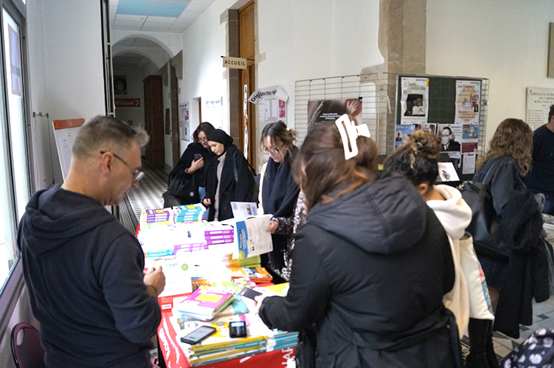 Deux journées des éditeurs se sont déroulées dans le hall du bâtiment de l’INSPÉ de Mâcon, lieu de passage et de rencontres pour les étudiants, formateurs de l’INSPÉ et enseignants du 1er degré du département.