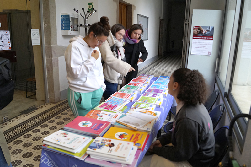 En octobre, comme chaque année, les BU INSPÉ Dijon et Mâcon ont proposé à plusieurs éditeurs de venir présenter leurs nouveautés aux étudiants et enseignants de ces sites INSPÉ, ce qui a donné lieu à plusieurs expo-ventes. C’est l’occasion pour les étudiants et enseignants d’échanger avec les représentant-e-s de ces maisons d’édition, de connaître leur fonctionnement (proposition de spécimens aux enseignants) et de découvrir les nouveautés aussi bien dans le domaine des annales de concours que dans celui des manuels scolaires.