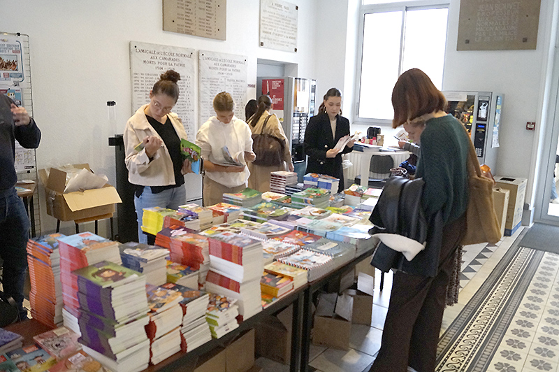 expo-vente des représentants d’Hachette, de MagnardVuibert, et de Lire c’est partir (éditeur de livres jeunesse neufs à 0.90 euros l’exemplaire pour les classes des cycles 1, 2 et 3).