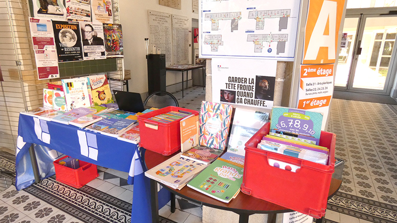 expo-vente des représentants d’Hachette, de Magnard - Vuibert, et de Lire c’est partir (éditeur de livres jeunesse neufs à 0.90 euros l'exemplaire pour les classes des cycles 1, 2 et 3).